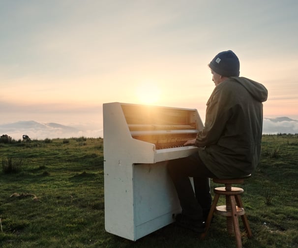 Il est fréquent de croiser Björn et son piano acoustique de 6 octaves en extérieur face à un paysage bucolique en création d’un tableau vivant et sonore.